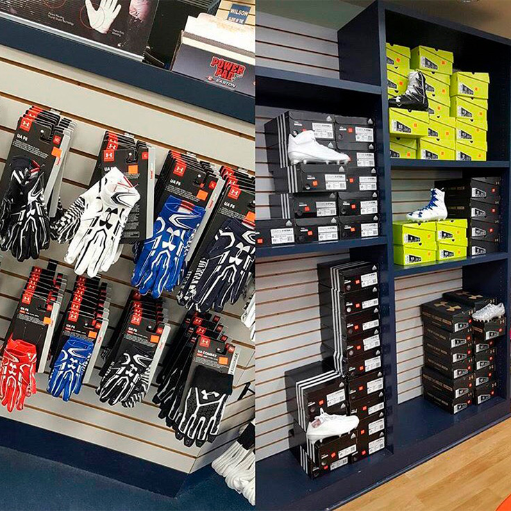 Providing the best sporting goods in the business is the top priority for our retail store. Our staff is highly trained and knowledgeable about our products and equipment. We have an in-house batting cage to demo bats and gloves so you can get that custom fit for your baseball or softball player. We also stock the best name brand apparel like Adidas and Under Armour. We have the best equipment from Wilson, Easton, Louisville Slugger, Mizuno, Rawlings, Schutt, and many more.